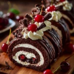The Black Forest Roll Cake is a delightful dessert that combines the rich flavor of chocolate with the sweet and tart taste of cherries. This impressive cake looks stunning and tastes even better, making it a perfect treat for special occasions, gatherings, or just a sweet indulgence at home. With its elegant roll shape and layers of cream and fruit, this cake brings a delightful twist to traditional chocolate cake recipes.