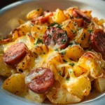 Keywords: Cheesy Ranch Potatoes, Smoked Sausage, Comfort Food, One-Pan Meal, Easy Recipe, Family Dinner