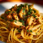 A comforting dish featuring tender chicken, creamy sauce, and perfectly cooked spaghetti, ideal for busy weeknights or impressing guests.