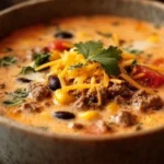 A hearty and creamy soup packed with ground beef, potatoes, beans, and flavorful spices, perfect for chilly nights.