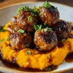 This dish is best served hot. Plate the sweet potato mash, add the meatballs on top, and generously drizzle with the bourbon-maple sauce. You can garnish it with fresh herbs like parsley for a pop of color. This comforting meal looks great on its own but can also be paired with a crisp salad or steamed vegetables for extra nutrition.