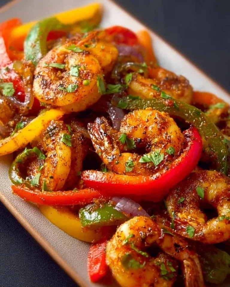 Quick and flavorful shrimp fajitas featuring Cajun spices, vibrant bell peppers, and creamy avocado, perfect for weeknight meals.