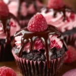 Delightful Raspberry Chocolate Lava Cupcakes with a gooey chocolate center and raspberry preserves, perfect for any occasion.