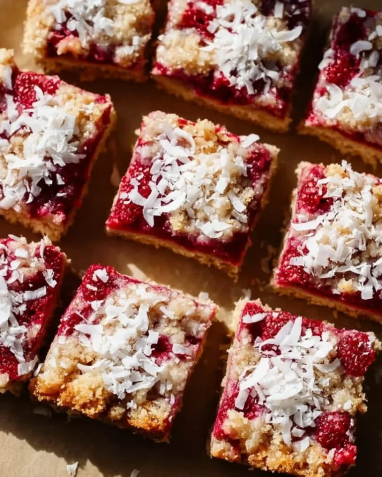 - Balanced texture: The butter gives tenderness, the coconut gives chew, and the raspberries give brightness. This mix makes each bite interesting.