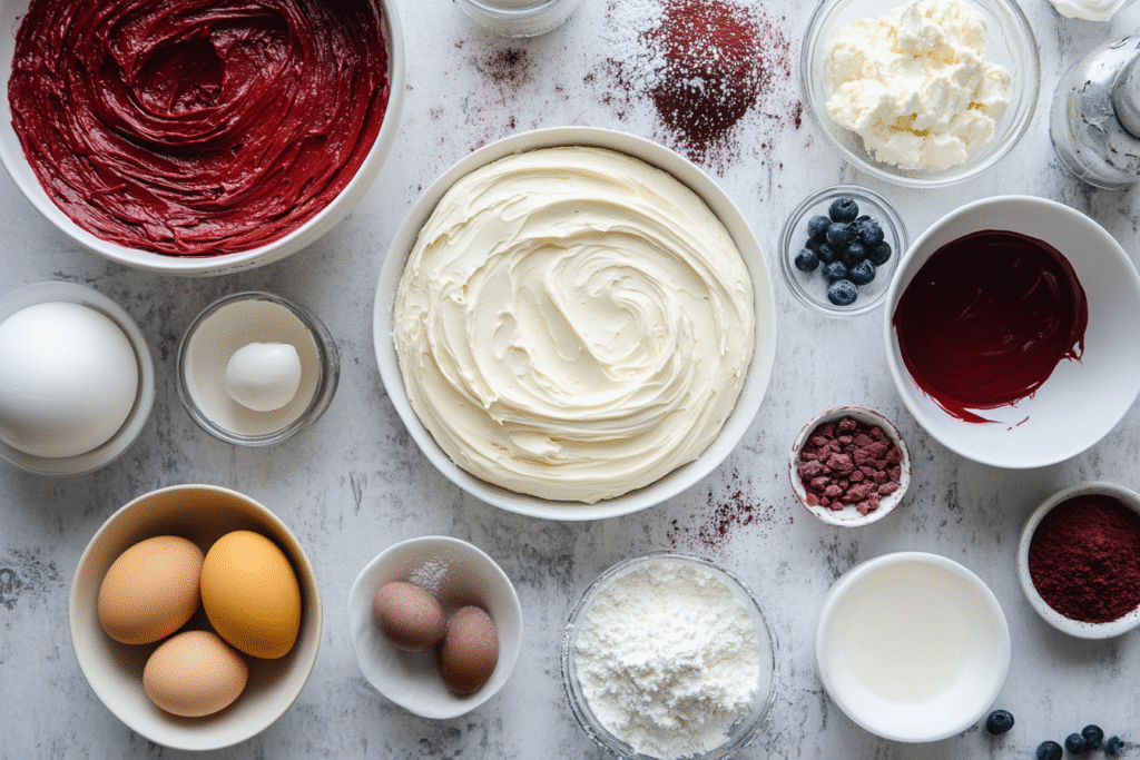 Ingredients for Red Velvet Cake with Cream Cheese Frosting