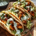You can prep the chicken and slaw in advance, but it’s best to assemble the pitas fresh just before serving.