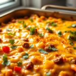 The Southwest Breakfast Bake is a tasty dish that mixes the Southwest’s rich flavors with a simple breakfast casserole. It’s great for busy mornings or big gatherings because it’s easy to make ahead.