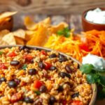 This dish is a classic Tex-Mex casserole. It combines the richness of rice and beans with Mexican flavors. It’s a Mexican-inspired meal that’s both tasty and satisfying.